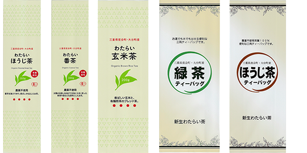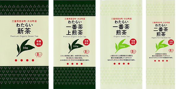 新生わたらい茶の生産地、三重県度会町は伊勢市から10数キロ宮川を遡った山間地にあり、「伊勢茶」とも呼ばれ昔から良質なお茶どころとして親しまれています。この地で私たちは、自ら堆肥を作り無農薬のお茶作りをし、農水省の日本農林規格「有機JAS規格」の認証を取得しています。これからも土作りから栽培、加工まで生産者が管理できる体制で皆様に安心して飲んでいただける良質なお茶を作り続けていきたいと考えています。